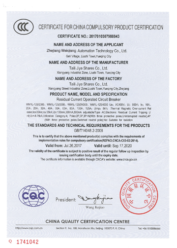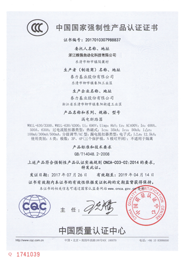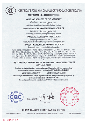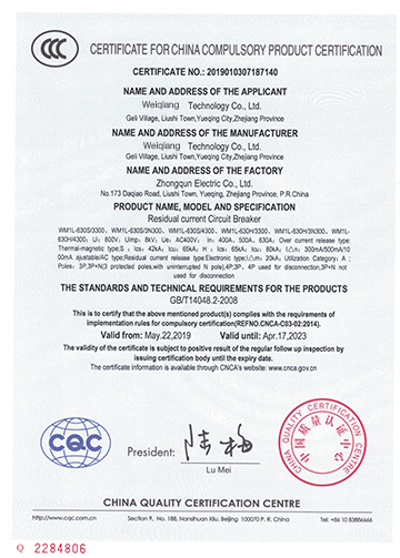 剩余电流保护断路器WM1EL-800 中 公认了解详情